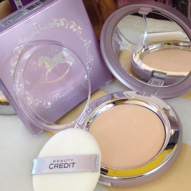Beauty credit lovely powder pact matt ค ณสมบ ต แป งฝ นอ ดแข งไม ผสมรองพ น สำหร บผ วผสม ผ วม น ช วยควบค มความม น ปกป ดร ข มขนไม ทำให อ ดต น ลดความหมองคล ำบนใบ.